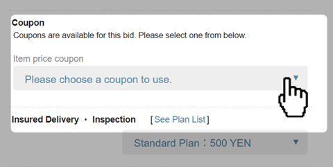 6. Please choose the coupon from the pull down bar, when you bid/place order.