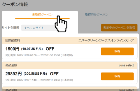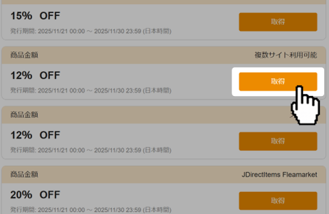 クーポンを使用する場合、まずクーポンを取得している必要があります。