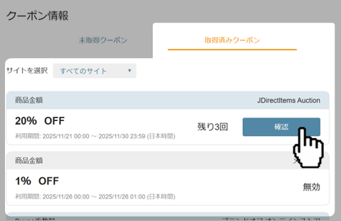 1. 取得済みクーポンにクーポンがあることを確認して下さい。