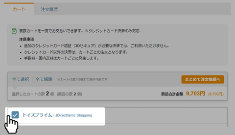 1. On the cart page, check the boxes for the carts you wish to check out together (maximum of 5).