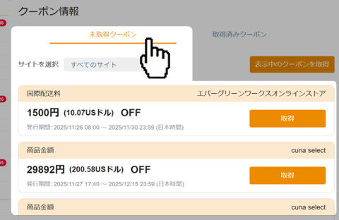 クーポンを使用する場合、まずクーポンを取得している必要があります。